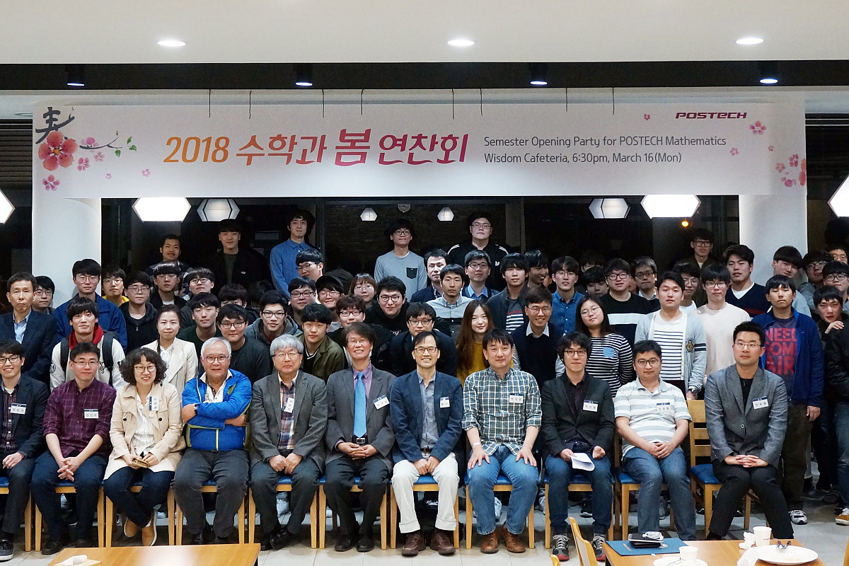 2018학년도 1학기 개강과 더불어 수학과, 포항수학연구소(PMI),기하학연구센터(SRC-GAIA), IBS기하학수리물리연구단(CGP) 소속 구성원 전체와 수학에 관심 있는 단일계열 학생들이 함께 하는 「2018 수학과 봄 연찬회」를 개최하였습니다.